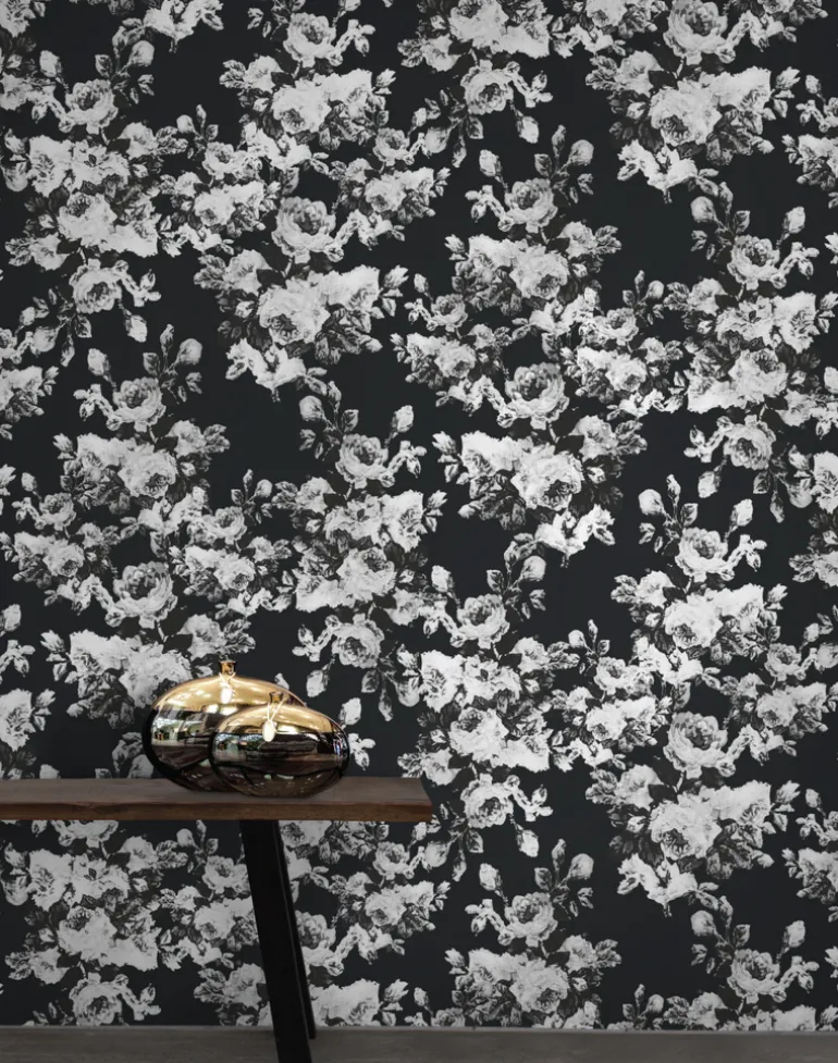 An unashamedly romantic wallpaper, Moody Bloom takes 19th century floral and rococo designs found during a renovation, and reimagines them for the modern boudoir.