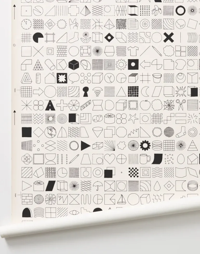 Based on graph paper, this one-color wallpaper is hand-screenprinted using water-based inks on recyclable paper.