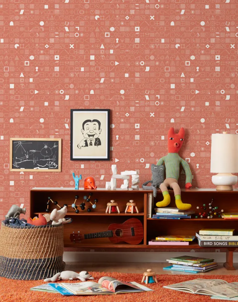 Based on graph paper, this one-color wallpaper is hand-screenprinted using water-based inks on recyclable paper.