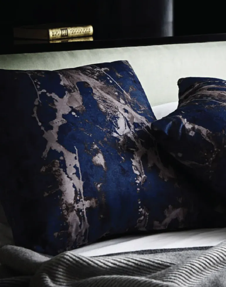 A portrayal of bohemian exotica, the Blotto Collection is a collaboration between British artists, Paris, and Nosca Inc. Introducing a sensual marbled design with subtle complementary tones and veins of hand-painted texture, this collection is based on a misty, delicately-blotted watercolor composition by Paris, which is digitally infused with Nosca Inc’s hypnotic pattern repeats. 17 patterns invites you to immerse in the comforting warmth of this blissful, cotton velvet cushion.