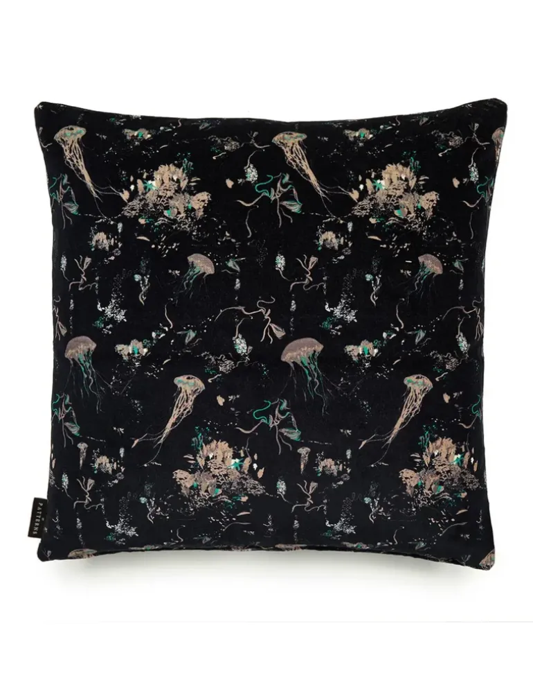 Submerge yourself in the tranquil underwater world of 17 Patterns? Jellyfish collection by 17 Patterns and Christina K. This aquatic paradise features electric jellyfish with trailing tentacles submerged in an oceanic current of coral reefs and sea anemones.