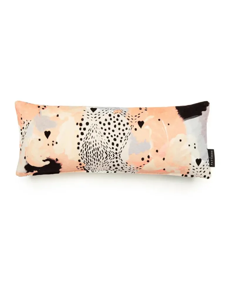17 Patterns and Christina K, present a beautiful exploration into the wild with their Love Leopard Peach Lumbar cotton velvet cushion. Using traditional and digital mark-making techniques, this alluring composition of love hearts, spot formations and peppered textured camouflage, captures the signature romance of Christina’s illustrative works.