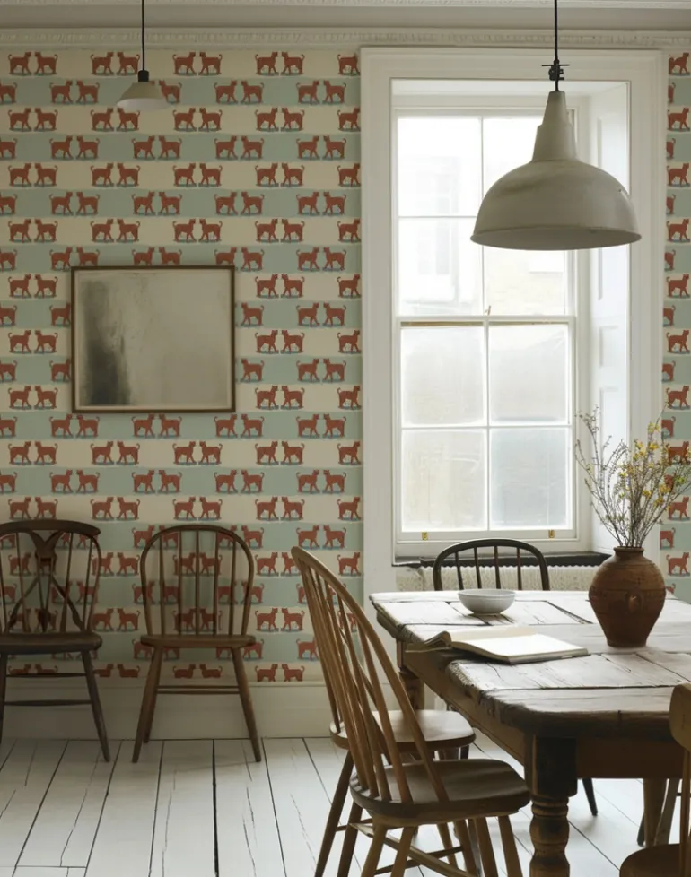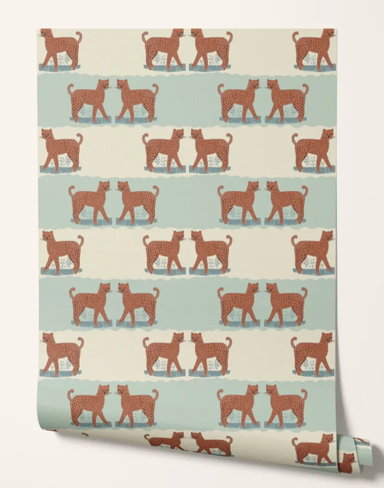 This playful wallpaper is your partner in sustainability, declaring that true style transcends fads. Inspired by the wisdom that a leopard’s spots endure, it promises a bold and timeless charm, making it a delightful haven for the young and the young at heart. So, let your space dance to its own tune, as this wallpaper whispers: Be bold, be joyful, and never worry about going out of style. Available in subtle shades of green and blue, this wallpaper creates an enchanting backdrop for any space, inviting everyone to explore the wilder side of decor