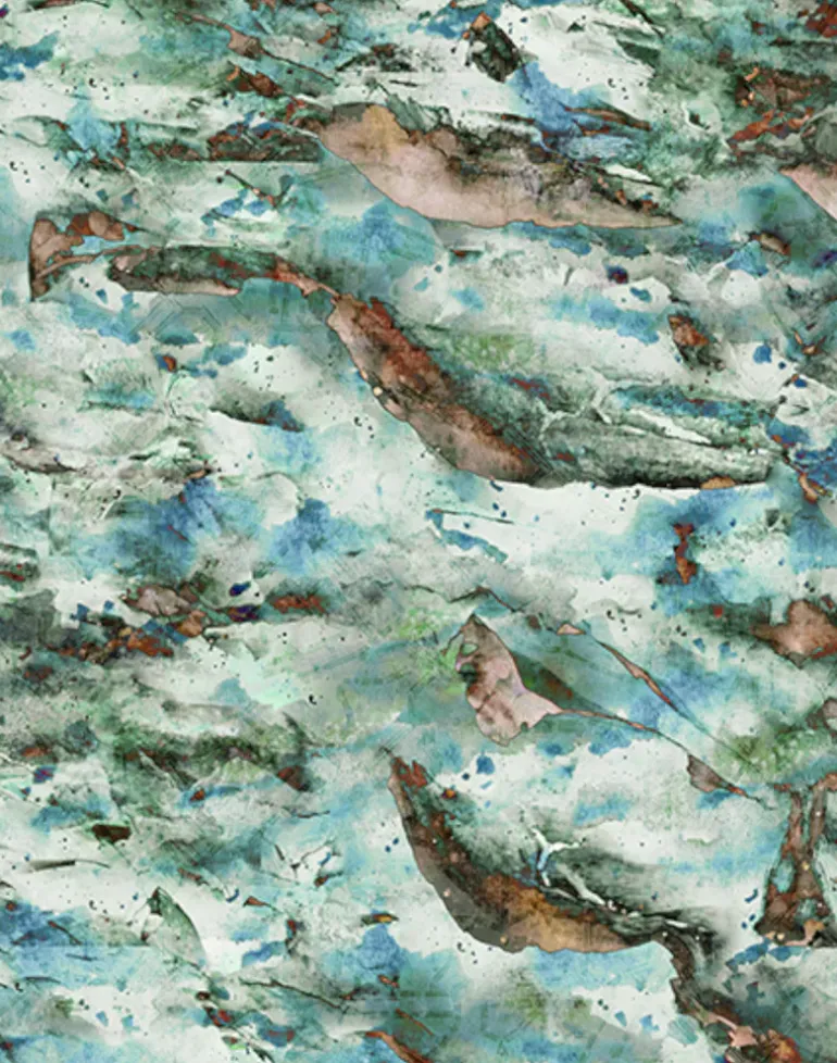 Varying shades of blue and green illustration on a neutral background