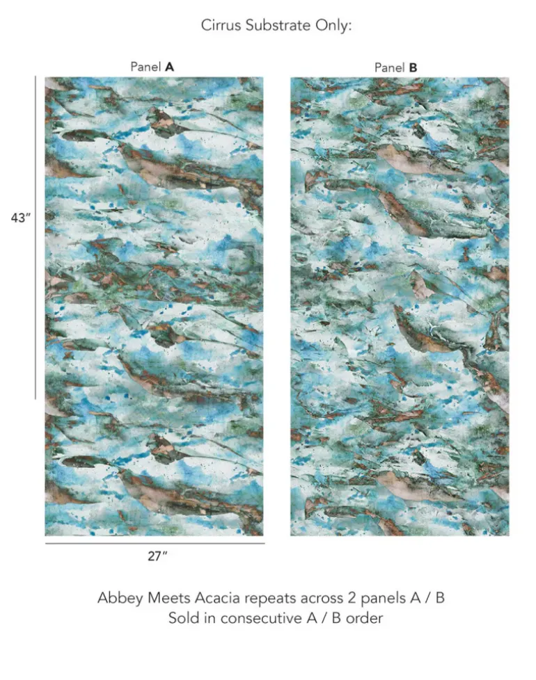 • Our Cirrus substrate is pre-coated, non-woven wallpaper with a smooth finish. Remarkable art is achieved on the Cirrus ground by virtue of its matte, consistent surface. A 1/2” overlap is designed into all rolls; it can be trimmed if desired.