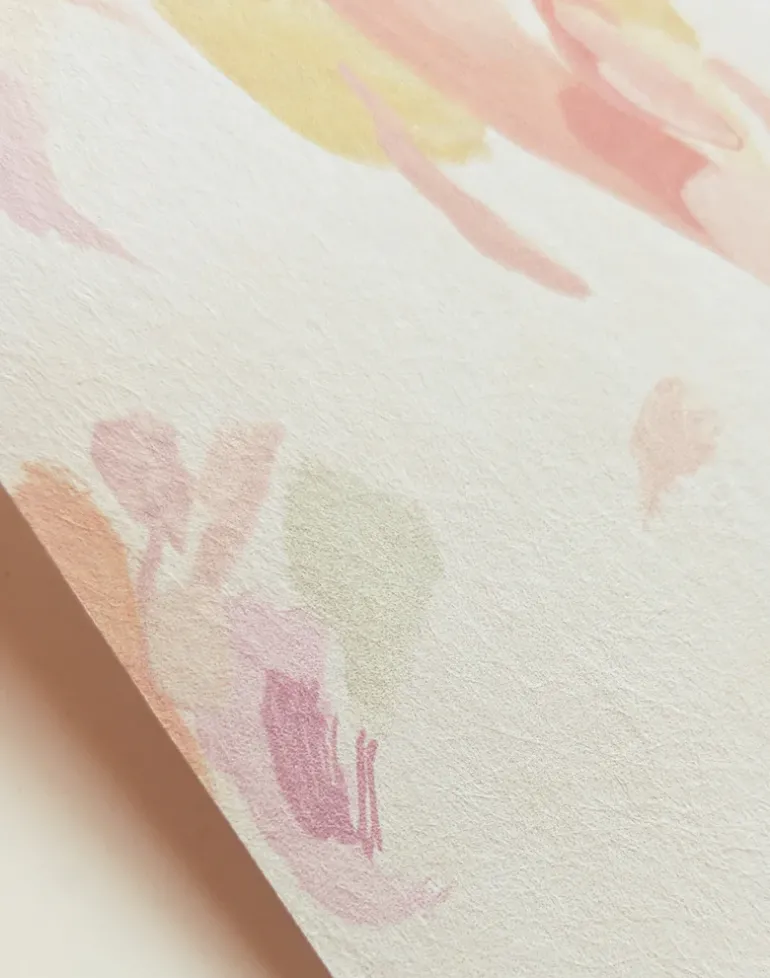 Whispers of petals and leaves dance across this abstract floral pattern, offering the elusive beauty of a gentle floral breeze. It captures the essence of flowers transformed into an artistic vision of motion and form.