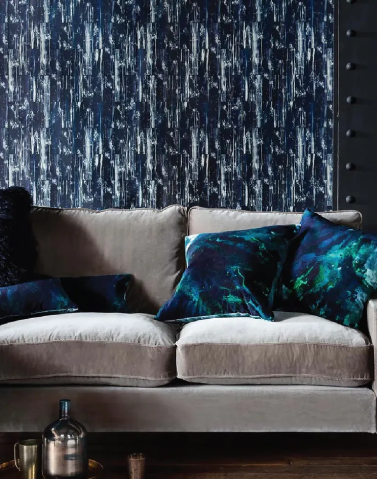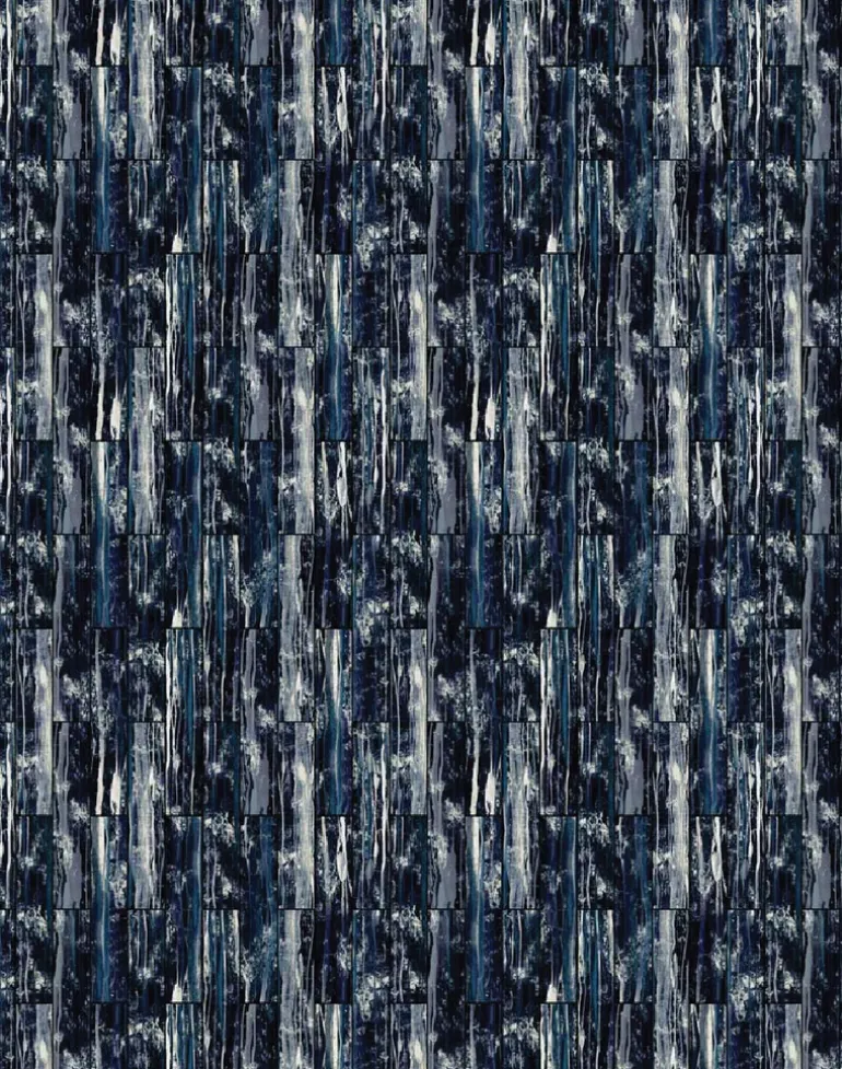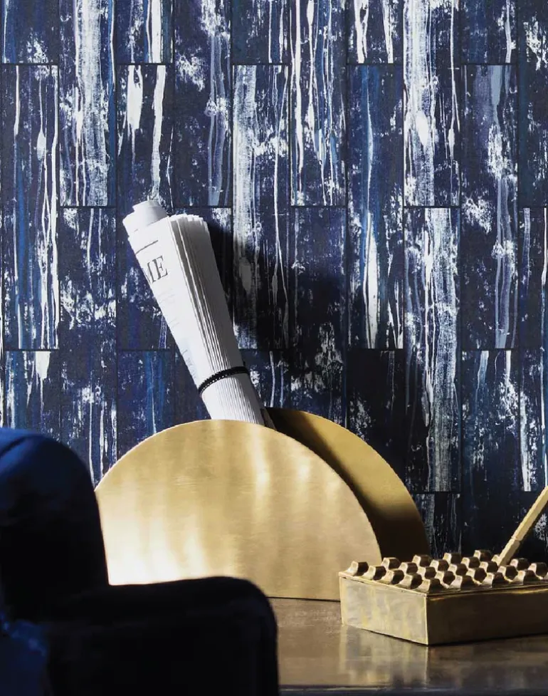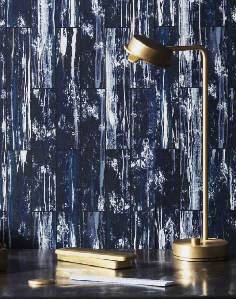17 Pattern’s innovative founder, designer Nosca Inc, and collaborative artists Paris, and Christina K reach dizzy heights as they drop a symphony of harmonious vertical textures to form Acro. Inspired by the surface corrosion of metal, the dramatic wallpapers’ sinuous veins evoke a sense of urban decay by cleverly combining both industrial and natural influences. To elevate the patterns hand-painted and digitally crafted patina, rich pigment blends of black, blue and neutral hues create a sense of sophisticated splendor within the structured confines of a repetitive grid formation.