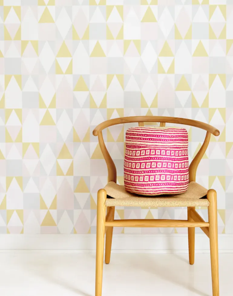 Soft pink, yellow, and grey illustration on creamy white background