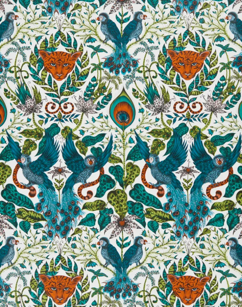 The Amazon Wallpaper is part of our magical Animalia collaboration with interior experts Clarke & Clarke. This design is inspired by the jungle scenes in the Amazon, featuring jaguars hidden amongst the foliage and playful parrots in the trees. Inject some exoticism into your home with this vibrant wallpaper; rich with striking greens, blues and a pop of contrasting orange, guaranteed to add a luxuriously bold statement to your interior.