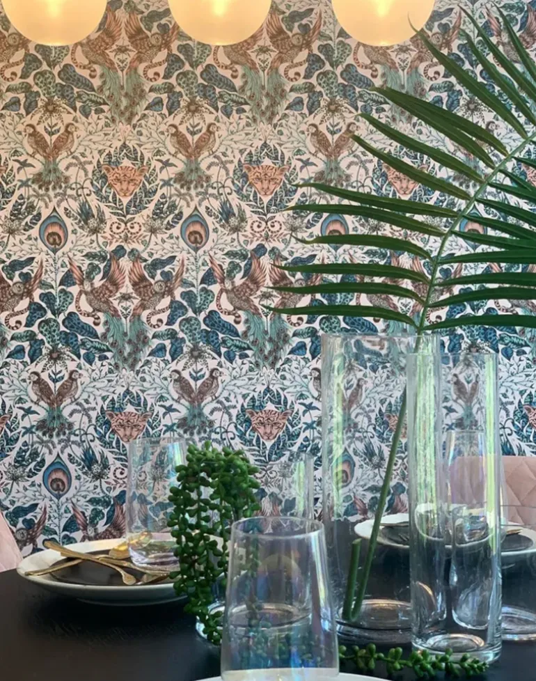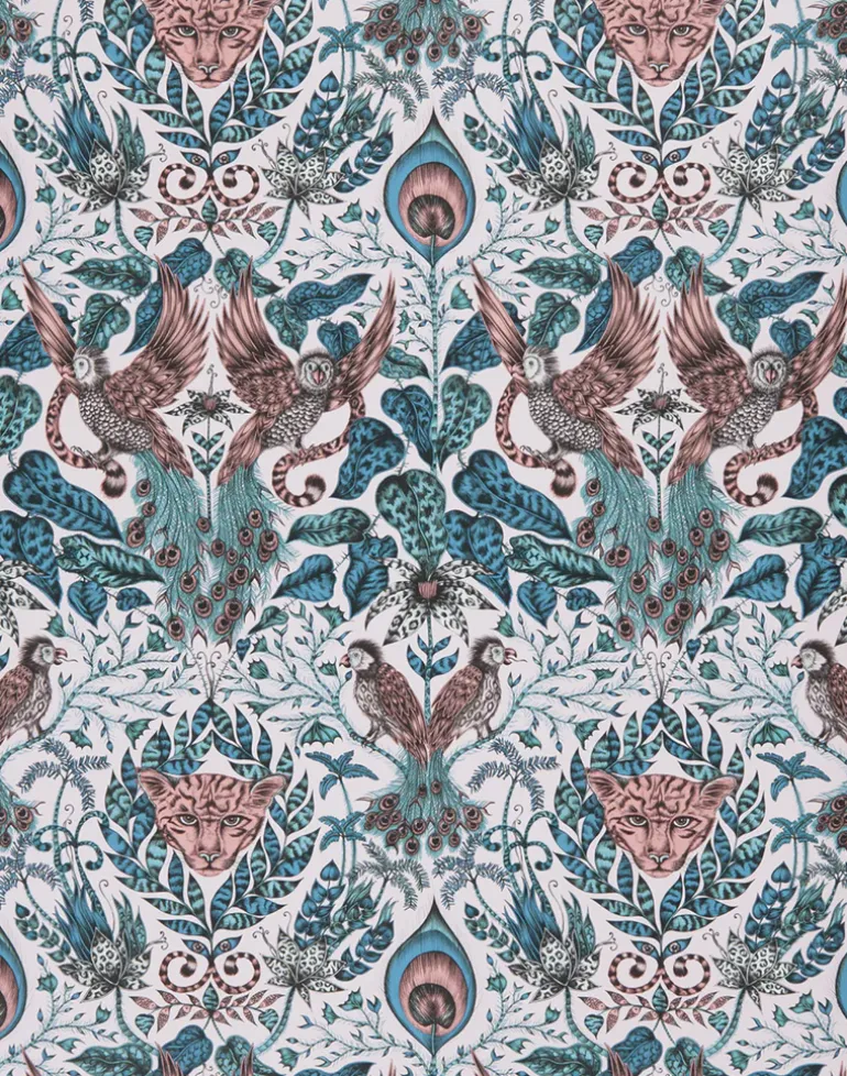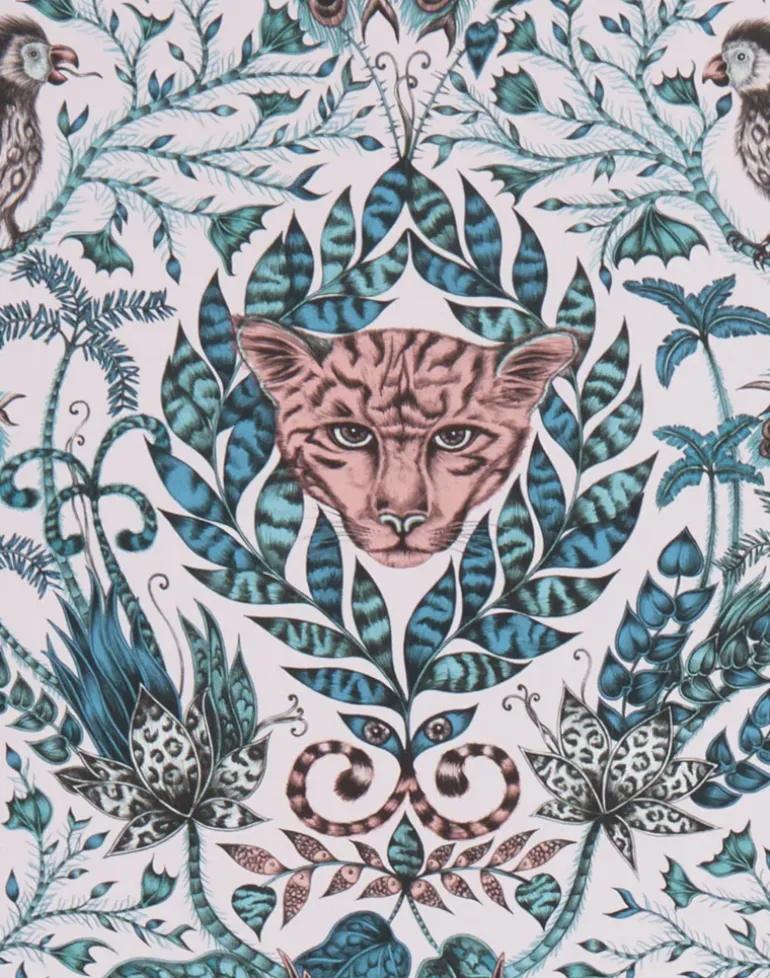 The Amazon Wallpaper is part of our magical Animalia collaboration with interior experts Clarke & Clarke. This design is inspired by the jungle scenes in the Amazon, featuring jaguars hidden amongst the foliage and playful parrots in the trees. Inject some exoticism into your home with this beautiful wallpaper – full of subtle pinks and soft teals and blues, guaranteed to add an air of opulence to your interior space.