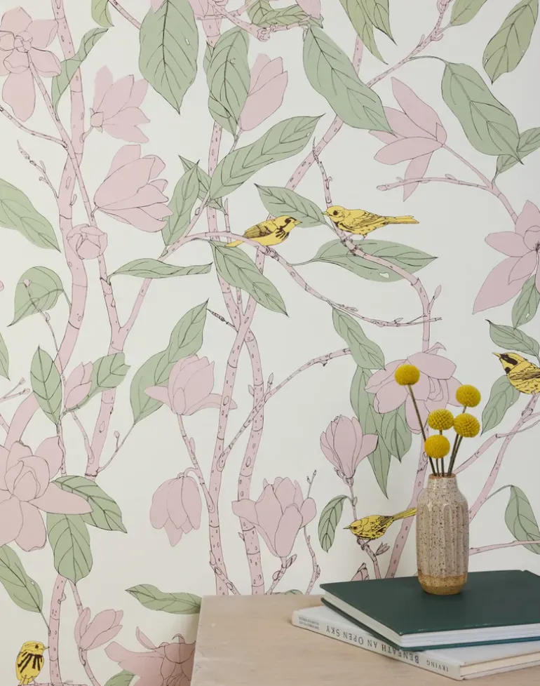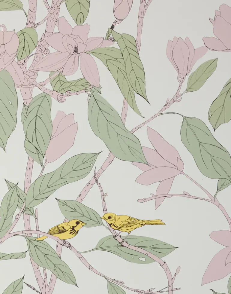 In the spirit of all things magnificent, and inspired by the San Francisco Magnificent Magnolias, Half Full brings you Analisse. A beautiful old-world style pattern, reminiscent of chinoiserie with magnolias and magnolia warblers. This pattern intertwines in a sophisticated upward-moving motion that visually lifts you up.