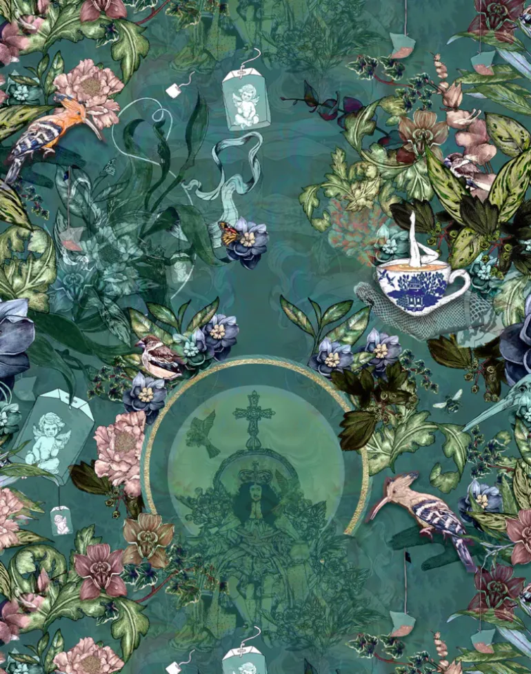 Taking inspiration from a variety of design periods to construct the pattern, with classic floral elements from orchids, peony’s and delphiniums (a flower that represents the transcendence of time and space – which in my opinion a good cup of tea takes us to! Linking eastern culture to where tea leaves were first discovered to western culture after King Charles II first introduced it to Britain.