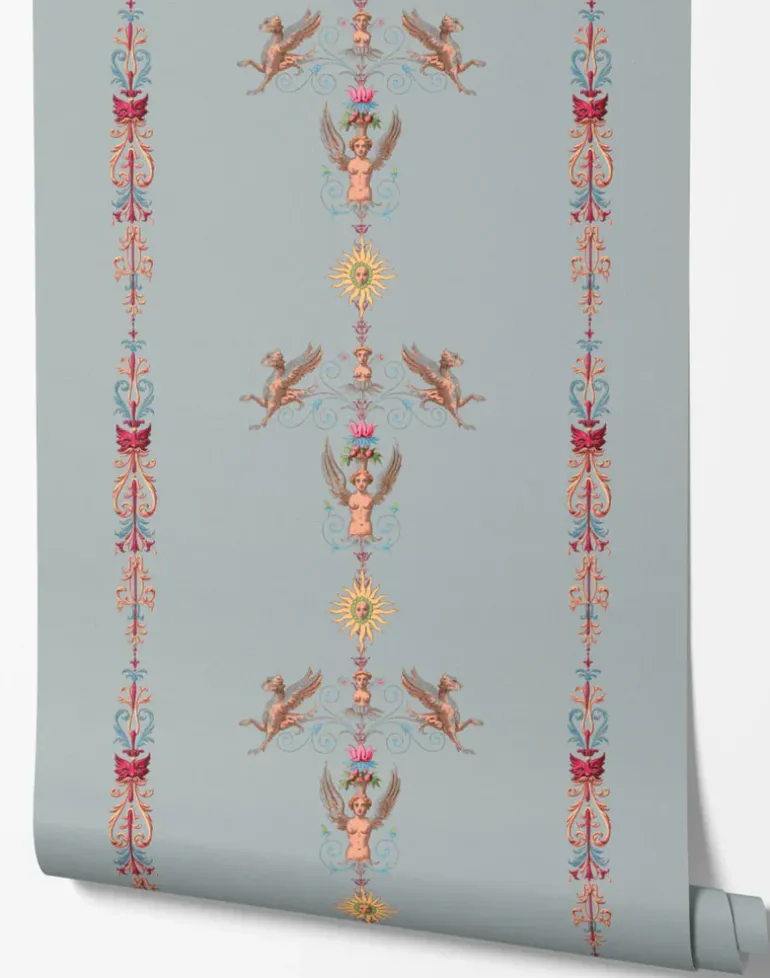 Embrace the opulence and ethereal beauty of the Rococo era with our design, “Angels and Suns”. This exquisite pattern captures the essence of 18th-century artistry, seamlessly blending celestial and mythical motifs into a harmonious symphony of elegance. “Angels and Suns” is a versatile design that can effortlessly elevate a variety of spaces. Whether adorning flowing drapery, luxurious upholstery, or wallpaper, this enchanting pattern adds a touch of Rococo charm to any interior.