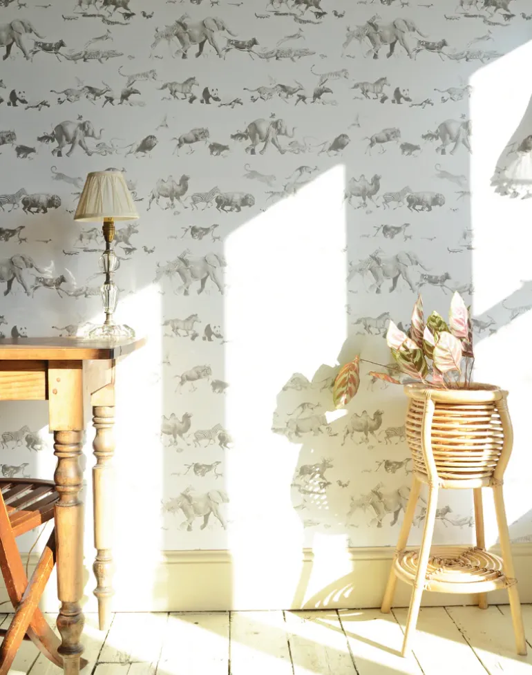 Father and daughter John and Louise Wakefield created the brand inadvertently in 2008, with the express intention of releasing a one-off velvet Skull wallpaper and leaving it at that. But ideas quickly snowballed into an entire pattern book of designs, print houses were far too accommodating and before you could say ‘financial crash’ a whole brand was born. John has over 50 years’ design experience in wallpaper and illustration [and holds the Guinness World Record for building and flying the world’s smallest remote-controlled airplane] and Louise was a location photographer with a sideline in property renovation which continues to this day. They share a history of obscure interests from atomic energy, lucite guitars and microlights to sharks, perfumery and herbal medicine. In the 1980’s they were residents of the rolling Pendle Moors – cradle of the modern wallpaper trade – and Beware the Moon still print just down the hill today. The company’s roots are in time-honored craftsmanship, keeping the wallpaper trade with its feet firmly on the ground…but its head in the clouds.