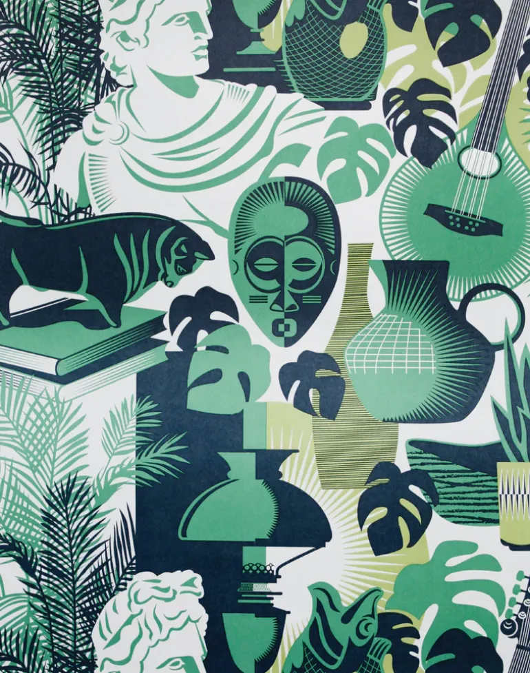 From classical bust to oil lamp, this eclectic and eccentric print features all the still life props we drew in our teenage art classes.