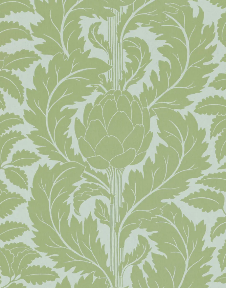 Like grooves in a vegetable garden the artichokes create a subtle stripe on the wall. The pattern is repetitive and ornamental.