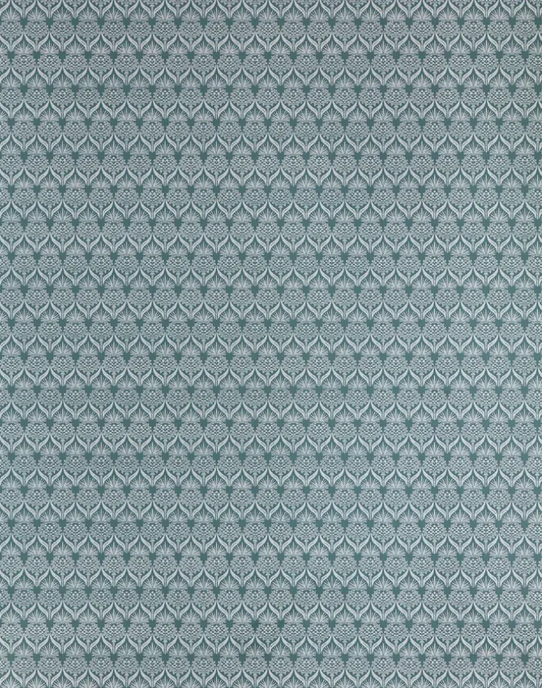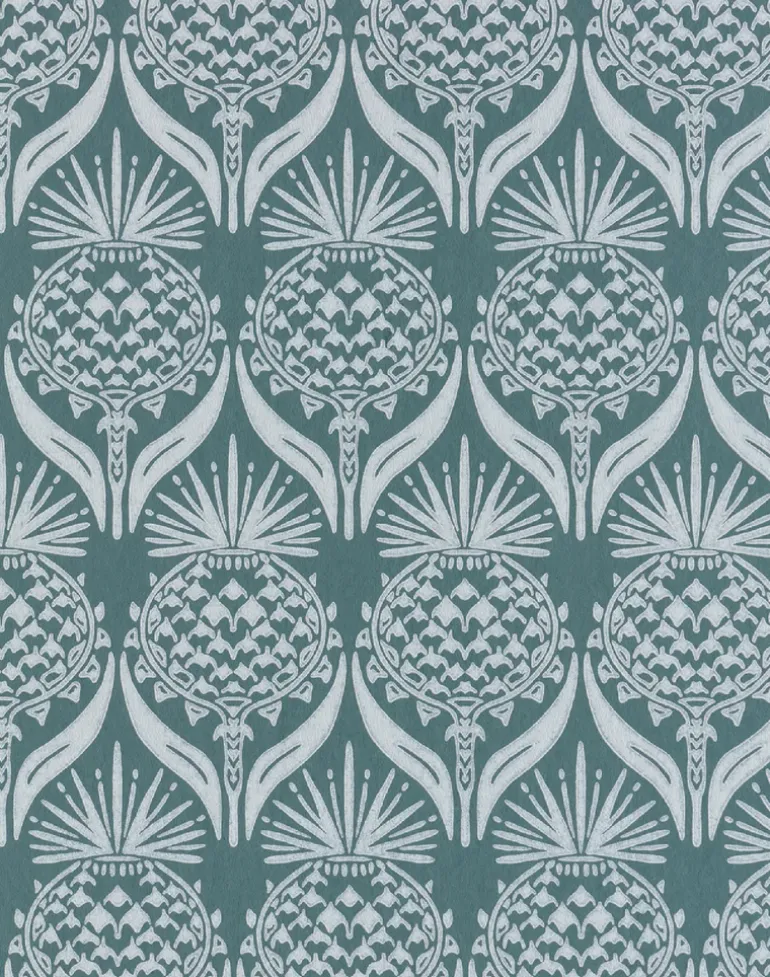 A small-scale repeat of golden Palm trees, available in an elegant midnight blue or a soft gold on parchment.
