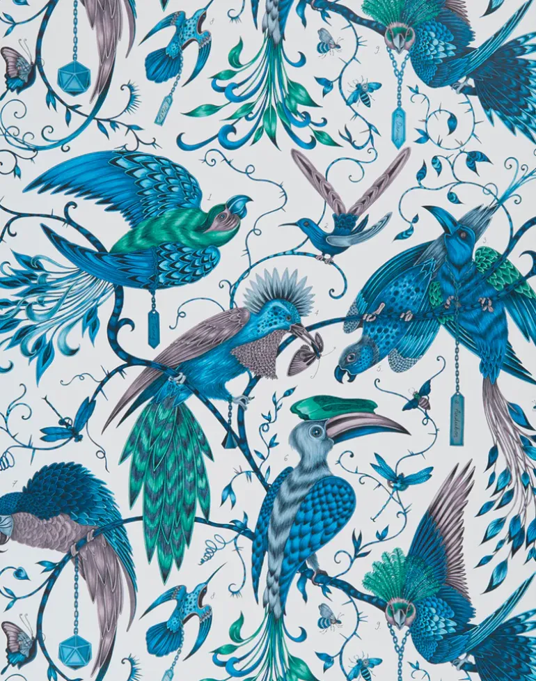 The Audubon Wallpaper is part of our magical Animalia collaboration with interior experts Clarke & Clarke. This design is inspired by the work of botanical illustrator John James Audubon, who was known for his incredible paintings depicting magical creatures of the sky. Inject some exoticism into your home with this vibrant color way, full of magical blue, green and teal tones to transform your home. The Audubon wallpaper also features shimmering metallic highlights throughout the design.