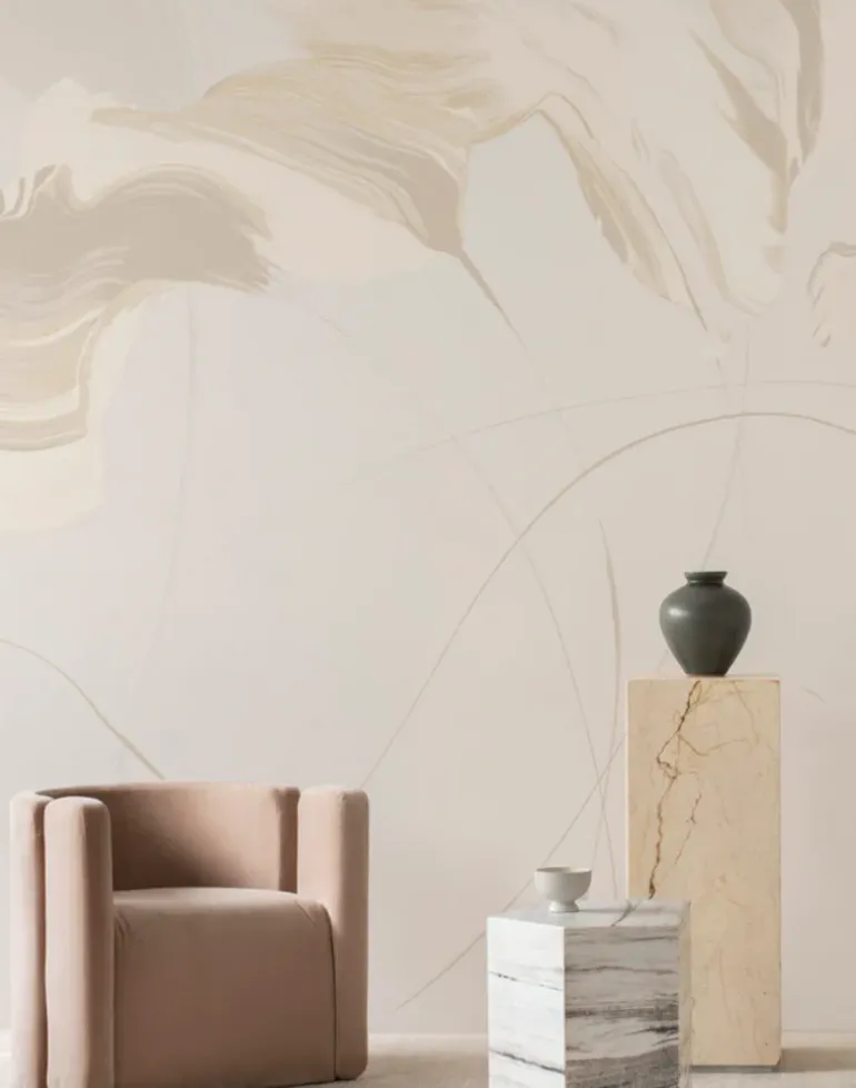 Watercolor brushstrokes flow across the paper, designed to bring restfulness to a room, adding a delicate and decorative touch.