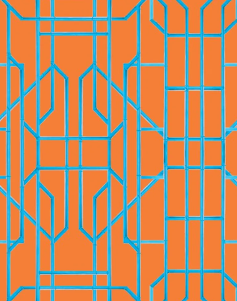 Add some fun to your walls with this geometric wallpaper with a clever twist on a classic bamboo design. This brightly designed colorful wallpaper will add an element of playful maximalism to any space and works well as a feature wall or a co-Ord with other papers in the range.