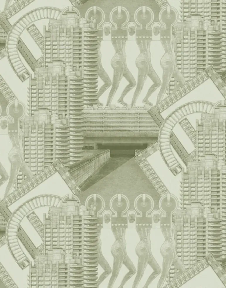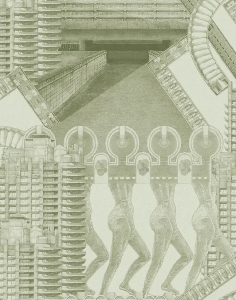 Inspired by idealised dreams and fears of the future from our recent past – aliens lurk in concrete utopias. In Barbican Walk and Barbican Bathhouse androgynous beings bathe & pose with walkways, fountains and gardens of the Barbican’s brutalist architecture.