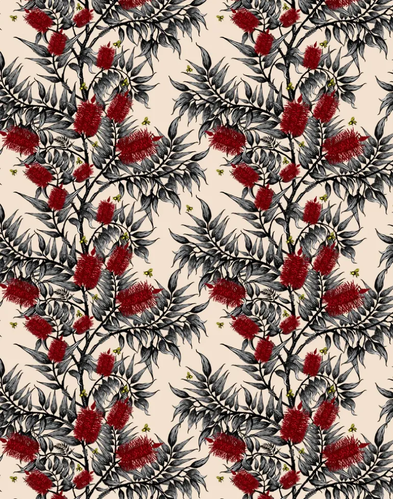 Our beautiful wallpaper is printed in Australia using our striking contemporary hand-drawn designs. Our most iconic design features the Callistemon species or more commonly referred to as bottlebrush because of their cylindrical brush like flowers resembling a traditional bottle brush. the plants are found in the more temperate regions of Australia.