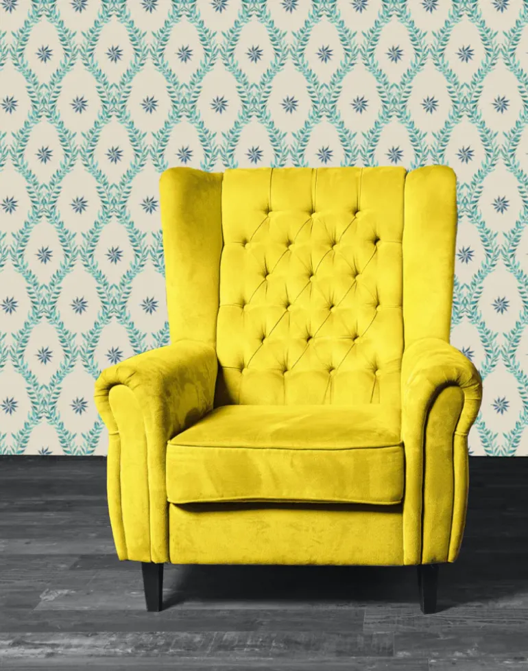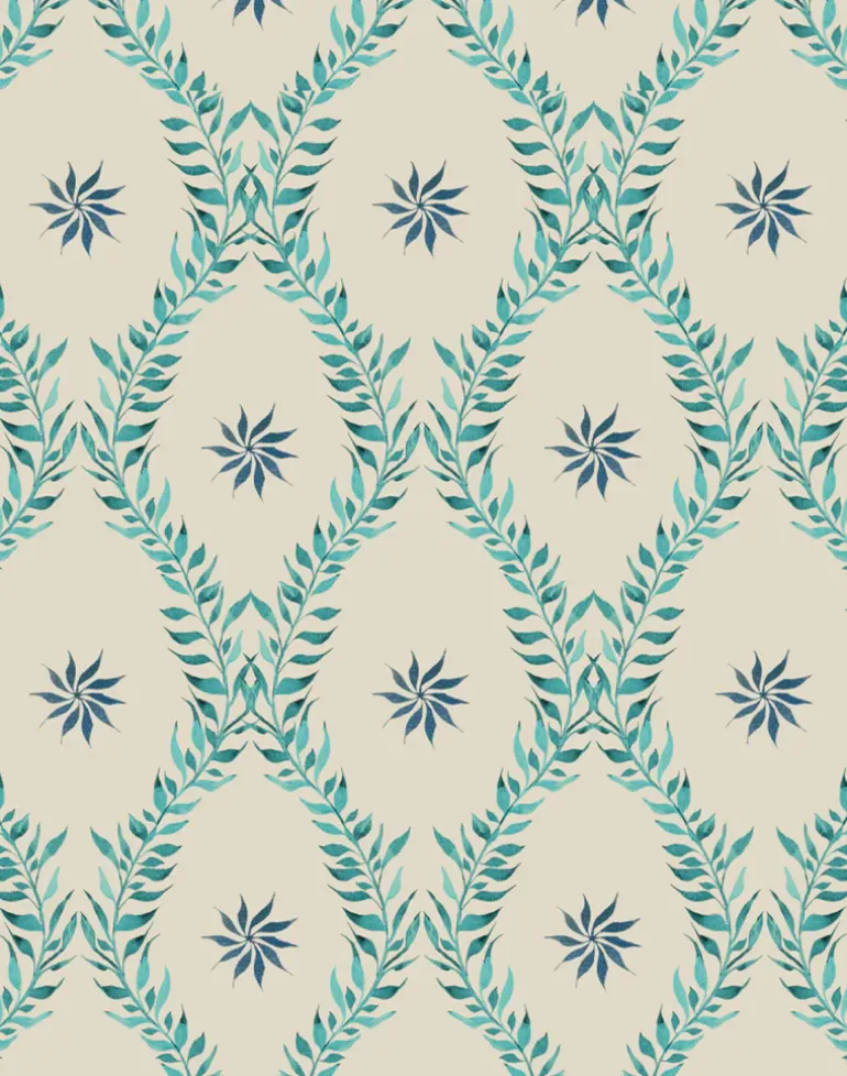 Hand-painted using Japanese inks, Belle’s classically inspired, diamond-shaped pattern exudes elegance in its uniform simplicity – but not all is as it seems. Step closer and the print’s gentle, leafy vines reveal themselves as they organically unfurl across the progressive design.