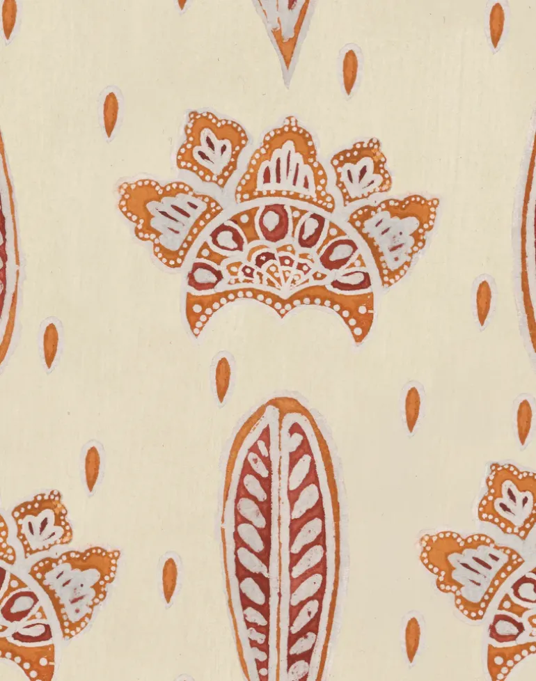 Dance through the tropical jungle to the beat of Javanese gongs and make a soundtrack from the rhythm of the rustling palms with BETHEL BATIK, a pattern showcasing the ancient Indonesian art of drawing and dying with hot wax. Decorated with traditional pod shapes and intricate crowns surrounded by delicate droplets, the gentle Antique White background brings the crafted nature of the unique forms into focus, its subtle shapes creating a calming neutral.