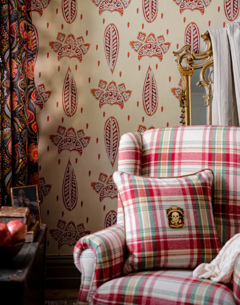 BETHEL BATIK was especially created to complement wallpapers from the free-spirited WOODSTOCK Designer collection and makes for a standalone statement piece too.