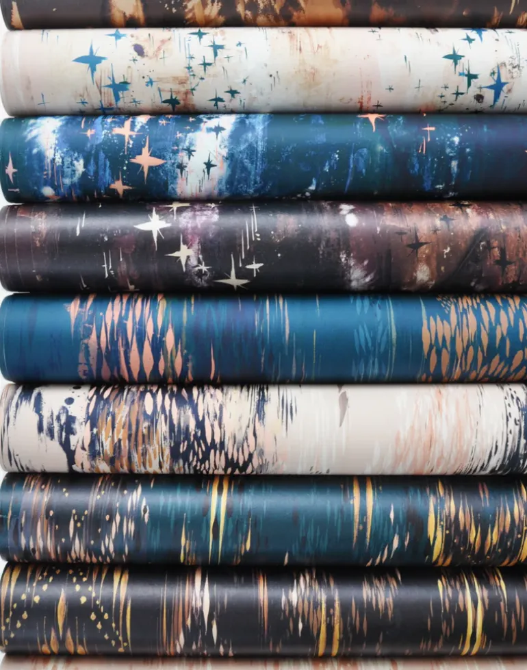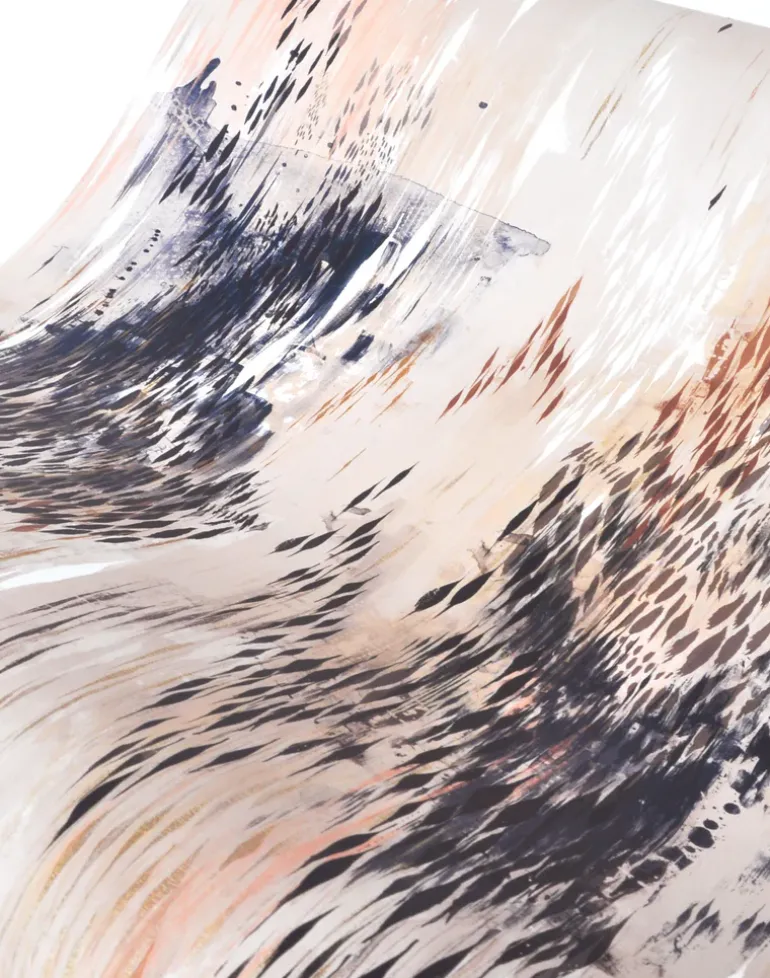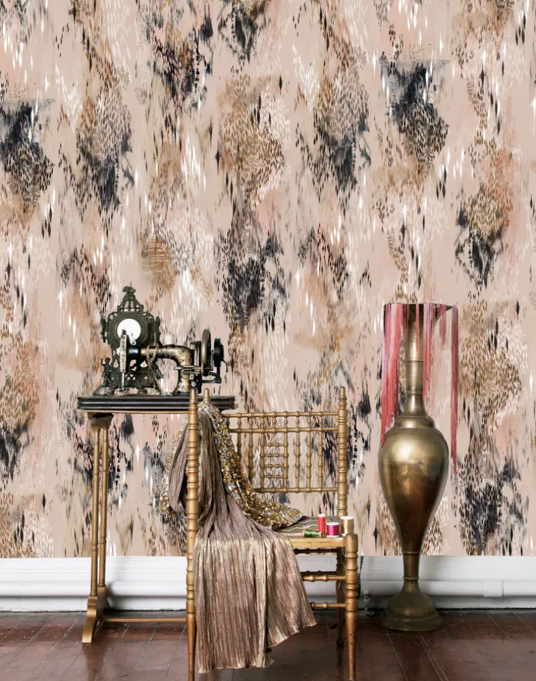 BIBI is an abstract take on animal print, and named in ode to the 1960s and 70’s brand Biba. A decadent fashion empire who’s eclectic interiors were draped in heavy velvets, sparkling brocades, tassels, tropical palms, animal prints and giant ostrich feathers. Dressing movie stars of the day like Brigette Bardot and playing hosts for bands like the New York Dolls, a time of glamorous rock and roll!