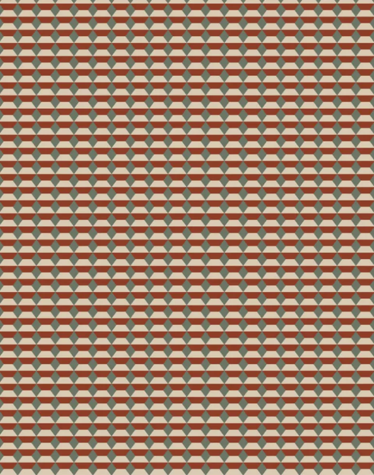 Deep red, olive green, and beige illustration