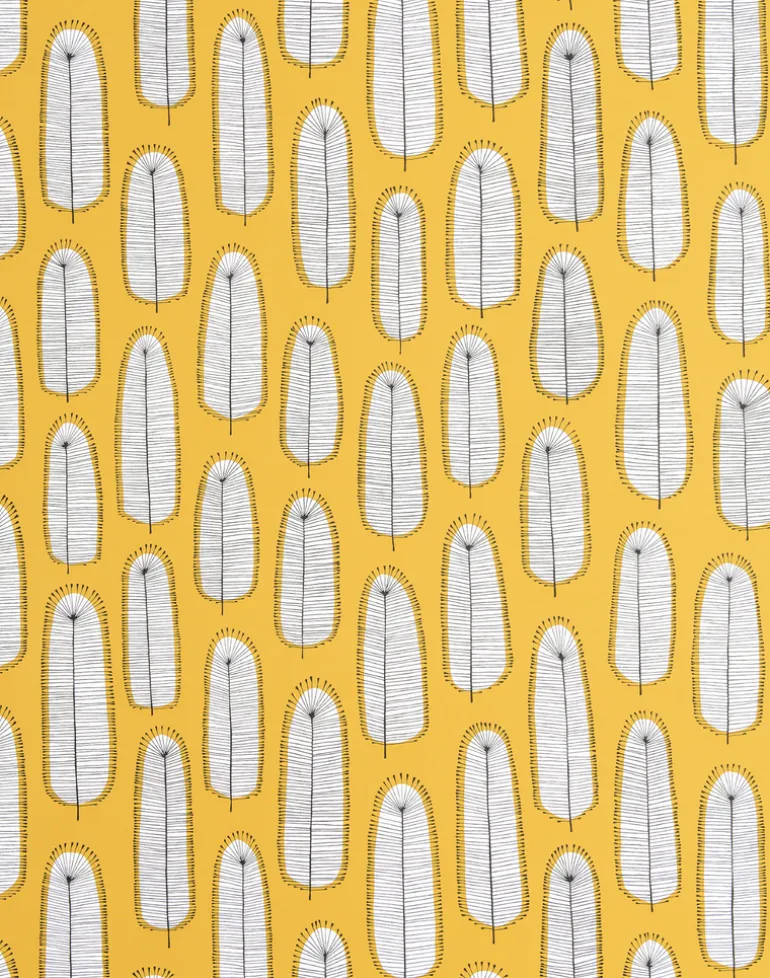 The exotic forms and impressive flower displays of the Australian Banksia plant, standing tall and enticing bees and other insects. Also available as a mono-color version. All of our prints were originally drawn by hand and developed in our own studio.