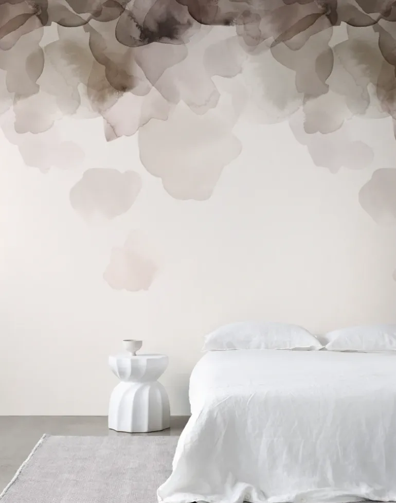 Layers of hand-painted watercolor flow across the paper, designed to bring restfulness to a room, adding a delicate and decorative touch.