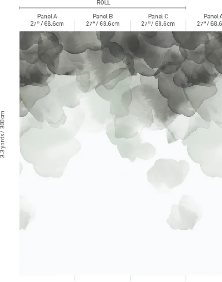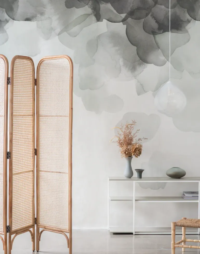 Layers of hand-painted watercolor flow across the paper, designed to bring restfulness to a room, adding a delicate and decorative touch.