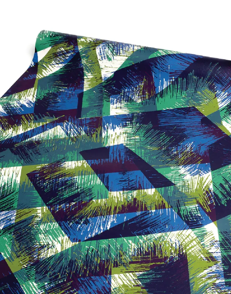 An ethnic-inspired design that the light seems to glide off, it is a fusion of African and Indonesian motifs, between wax and ikat. A colorful travel diary that transports us to Bali via Bamako.
