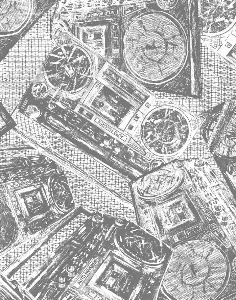 Boom Box was inspired by the cultural touchstone of growing up in the ‘80s—being fascinated by and worshiping the boombox. For Merenda, it was recording her own voice, the radio and listening to it constantly. The gold and black color way was inspired by RUNDMC, a legendary Queens Hip Hop group, whose tape Merenda would listen to over and over again, while staring at the speakers.