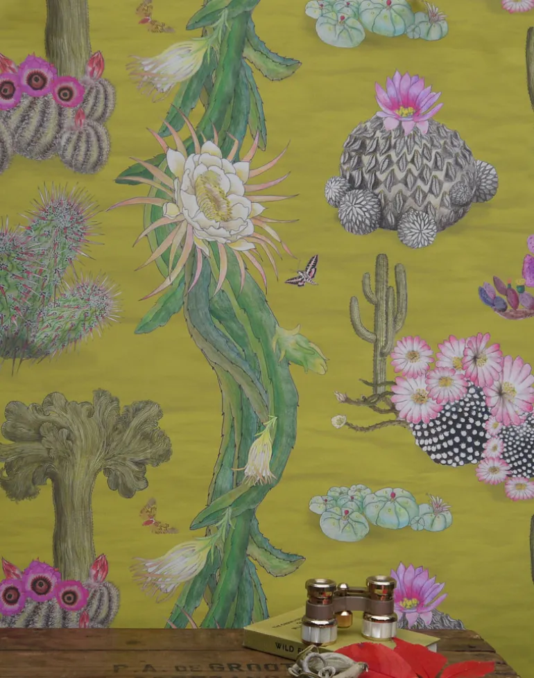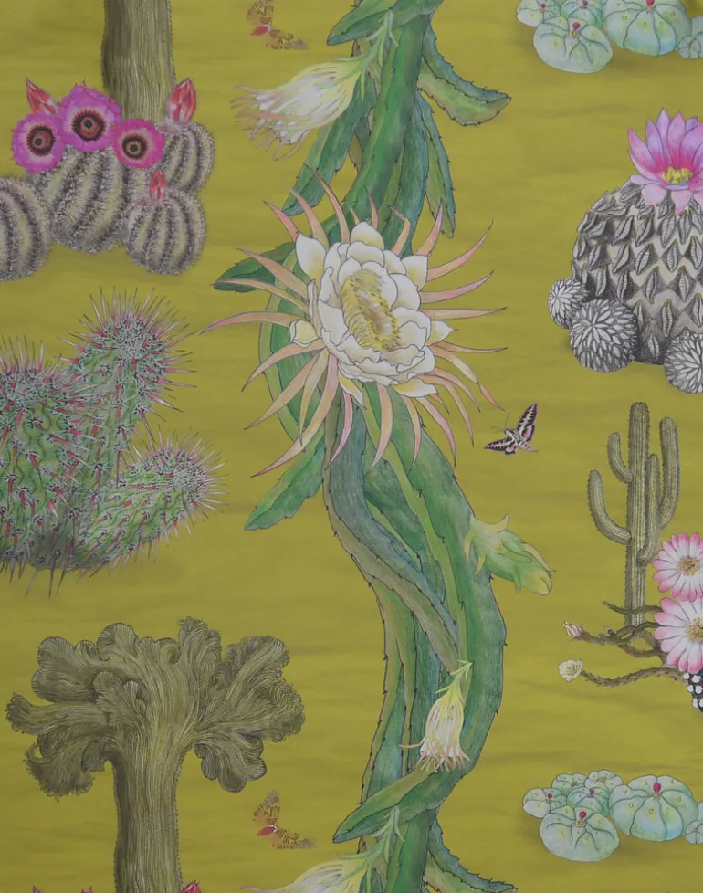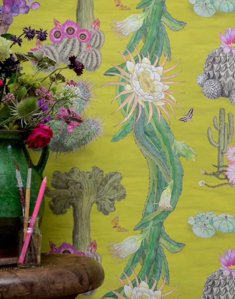 This design is the culmination of several years Dr Susy Paisley spent living in, and besotted with, Mexico. It celebrates the incredible diversity of Mexican cacti. Mexico is one of the world’s centre of endemism for this group of plants, and includes marvels like the Creeping Devil, a cactus in this design which actually moves across the desert floor! Cacti are enjoying a new popularity, but globally, one out of three cacti is in need of conservation attention. The design includes the Chisos Mountain hedgehog cactus, hallucinogenic Peyote, a critically endangered dragonfruit, which forms the long tendrils in the design, and lesser long-nosed bat (an essential pollinator for cacti) and the iconic saguaro and crested saguaro cacti.