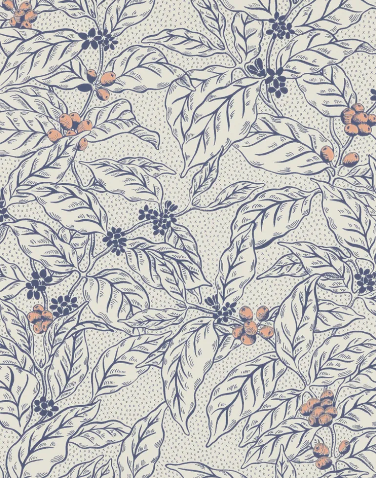 The leaves are leather-like and the small fruits grow closely together on the coffee plant. Coffee is unquestionably a part of our culture, and the smell of freshly brewed coffee creates a sense of pure pleasure. The design Caffeine is a celebration of one of our most beloved beverages.