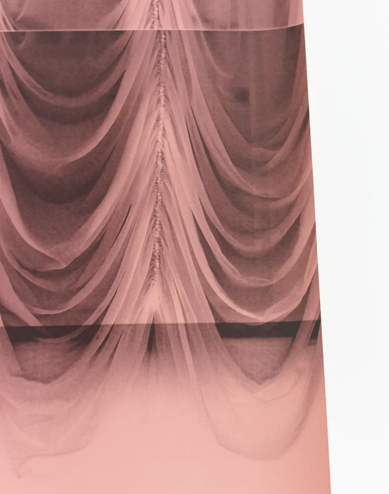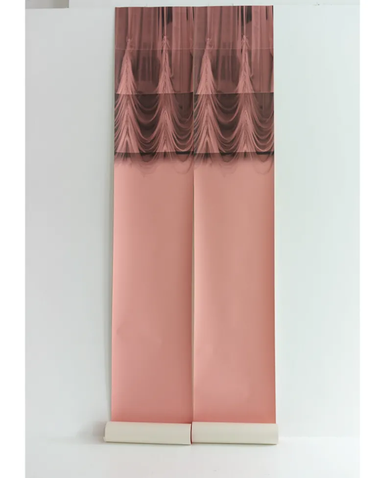 Deborah has produced an extensive range of individual, non-repeat wallpaper designs. These began with her graduation installation of ‘Hooks & Frocks’ which incorporates photographs of hanging dresses, montaged together and then machine printed at life-size onto drops of wallpaper. The monochrome images are brought to life by adding silkscreened color and hand painted detail, creating a homage to trompe l’oeil and deliberately shunning the repeat pattern. Deborah’s intention is for her work to interact quietly and playfully with objects and furniture, but not dominate the surrounding environment.