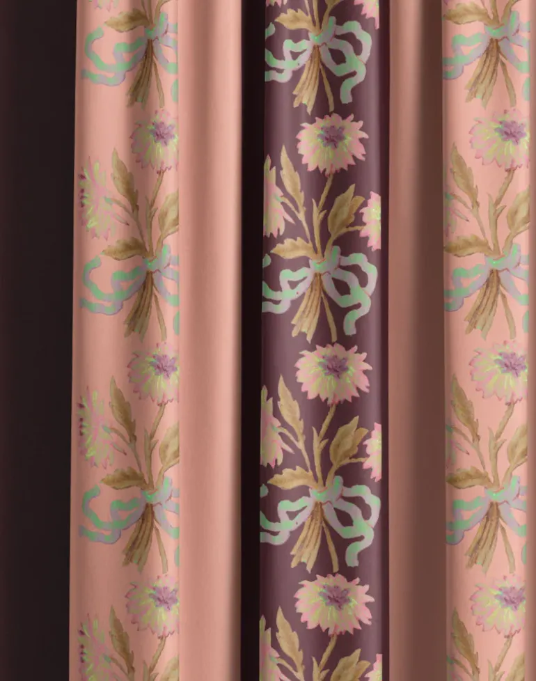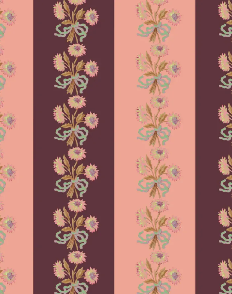 Inspired by the grandeur of French estates, “Chateau Stripe” combines ornate floral motifs and ribbon details in a classic stripe design. With its timeless elegance, this pattern bridges traditional and modern styles, offering a versatile option for both contemporary and classic interiors. The modern twist on a traditional stripe creates a refined, luxurious atmosphere, adding opulence to any space. Whether used in wallpaper or textiles, “Chateau Stripe” is perfect for those seeking to blend sophistication with charm.