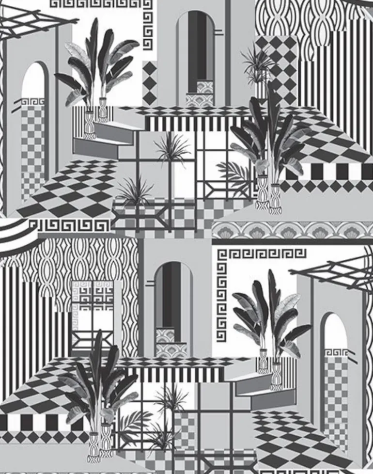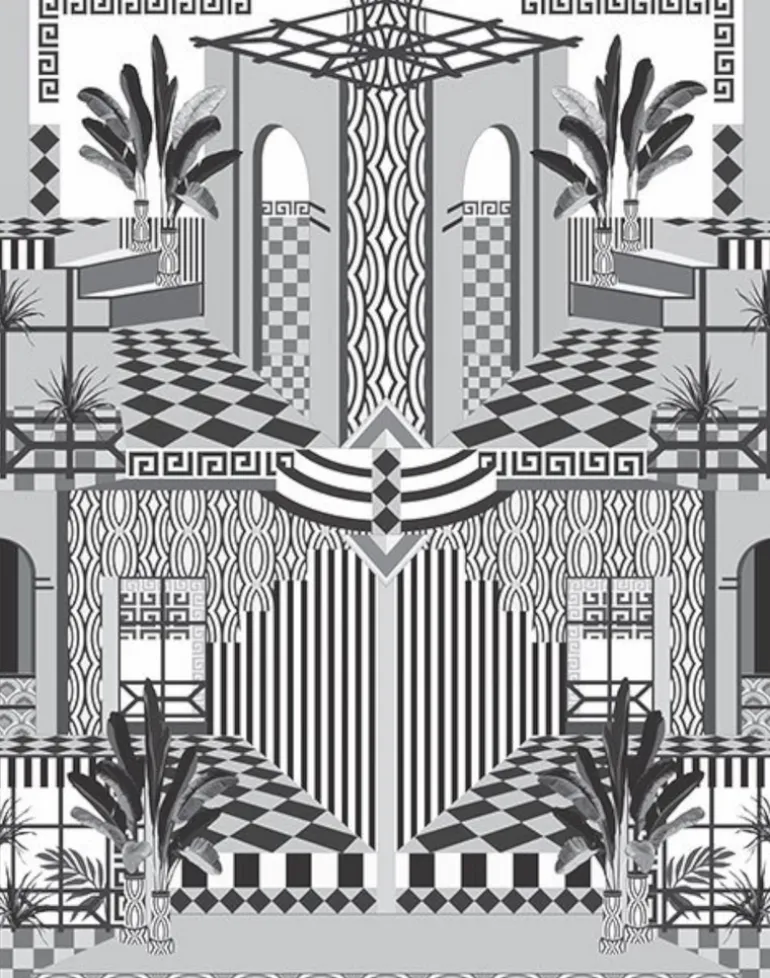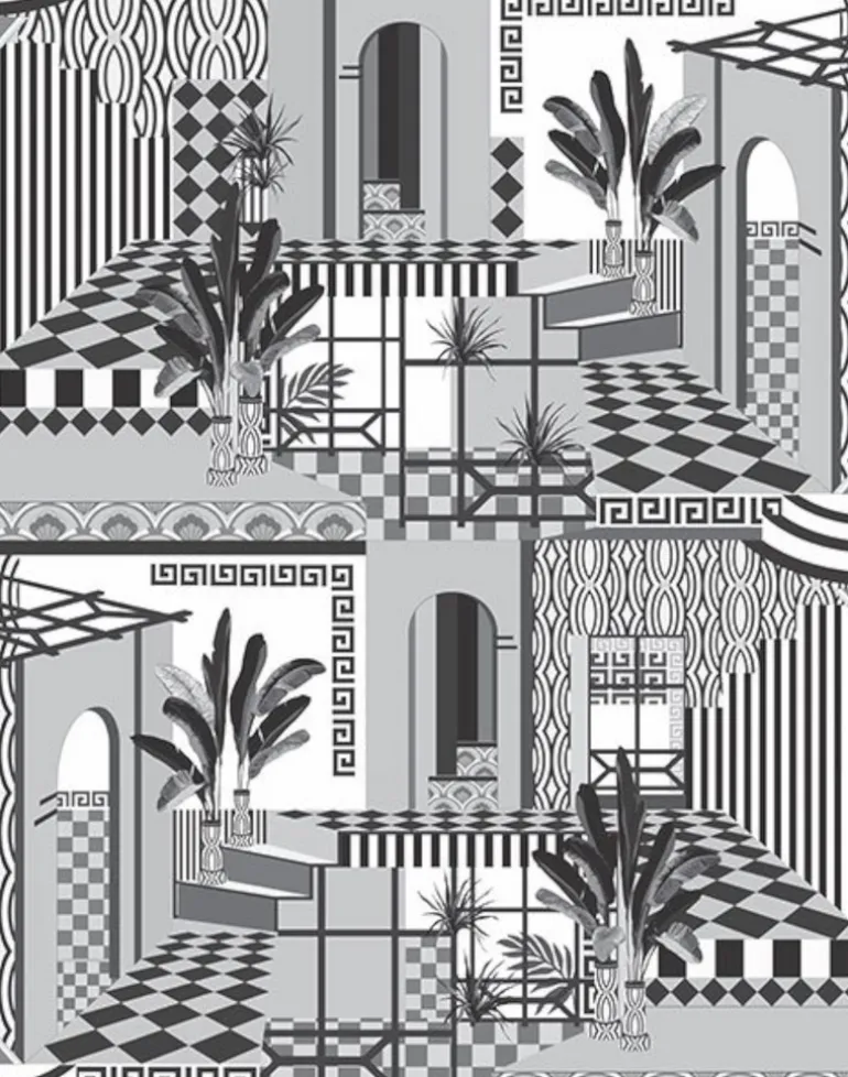 Make them stare with this statement Art Deco inspired wallpaper. Chatelaine has everything…arches, plants, stripes, checkerboards and masses of FUN! It’s a bold maximalist wallpaper design that is just pure magic and bound to create a stir in any space. It’s bold, it’s joyful, it’s a little bit bonkers.