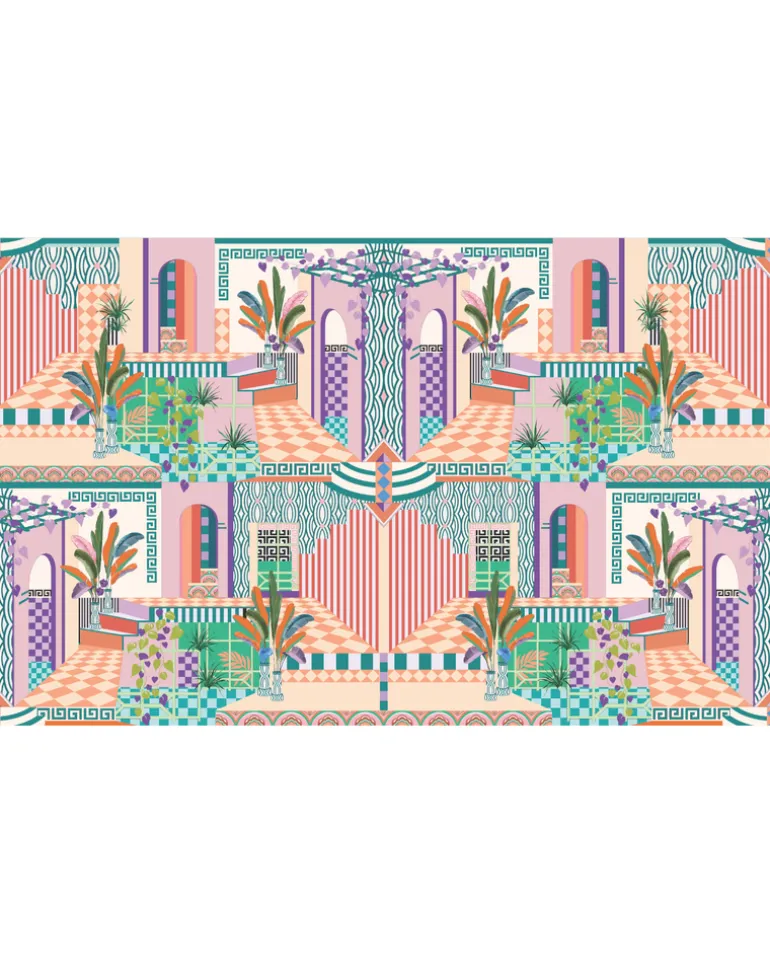 Make them stare with this statement Art Deco inspired wallpaper. Chatelaine has everything…arches, plants, stripes, checkerboards and masses of FUN! It’s a bold maximalist wallpaper design that is just pure magic and bound to create a stir in any space. It’s bold, it’s joyful, it’s a little bit bonkers.