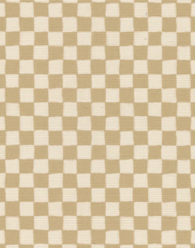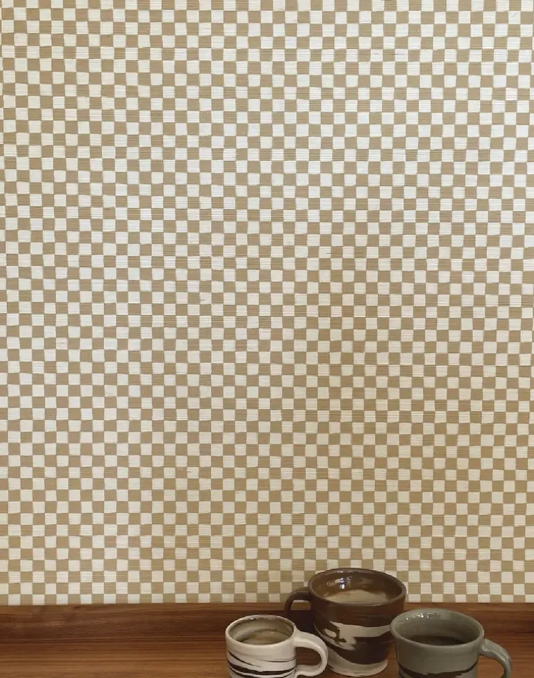 Checker is a hand-painted checkerboard printed onto grasscloth in nostalgic hues.