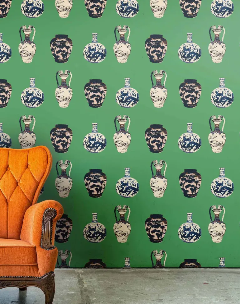 You’ll find both elegant, bold statement colors and delicate details throughout her designs, which have mainly been inspired by vintage prints found rummaging in antique shops around the world. Wallpaper are designed and printed in the UK and Sweden and all the raw materials to are sustainably sourced and made in Europe.