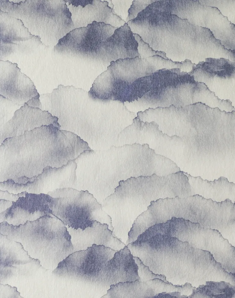 Layers of hand-painted watercolor flow across the paper, designed to bring restfulness to a room, adding a delicate and decorative touch.