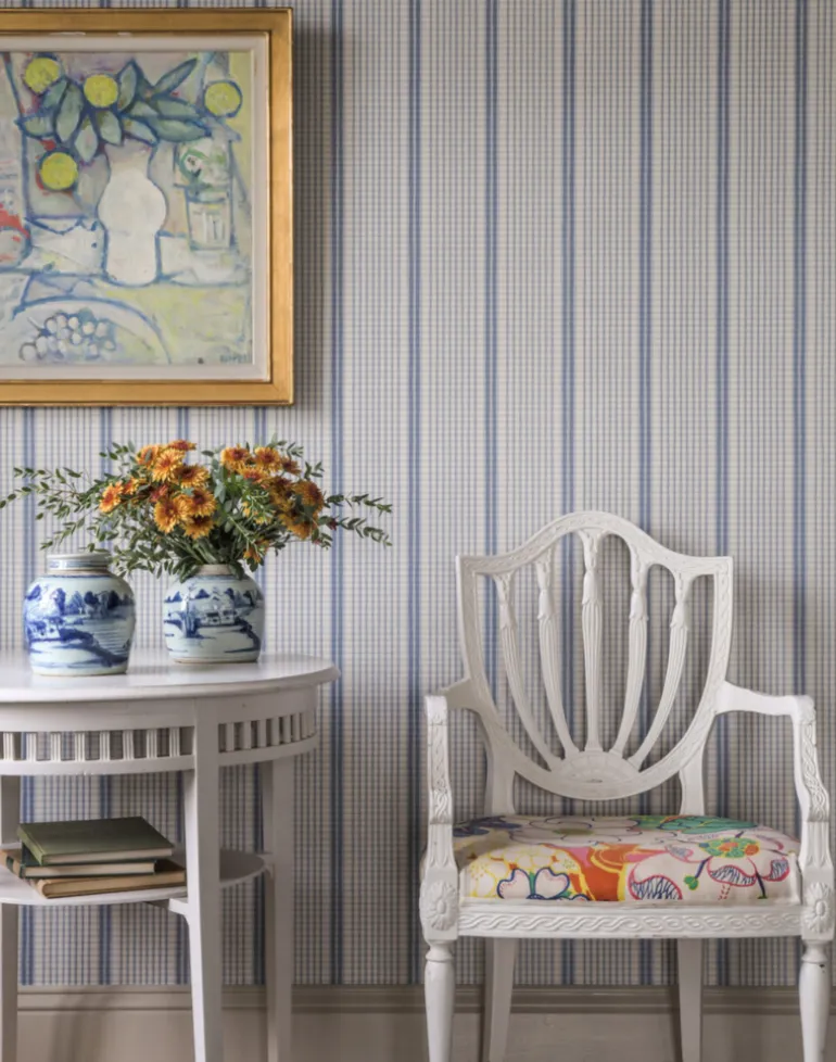 The stripes and checks often seen in shirt fabrics are the inspiration for this design. In this upscaled version the classic pattern creates a snug atmosphere in every room.
