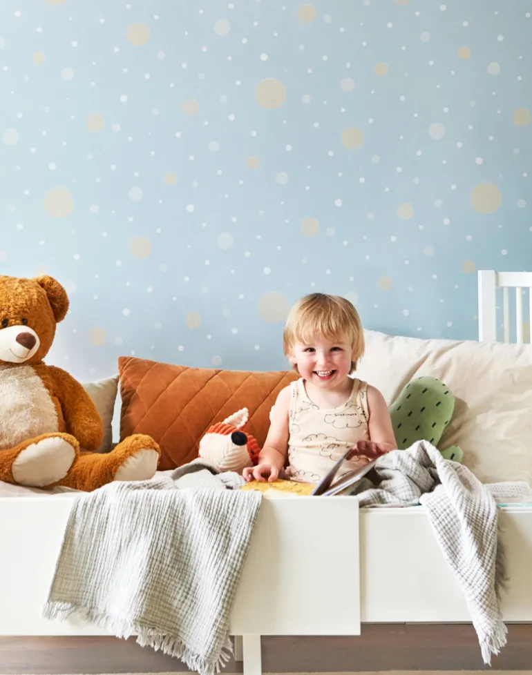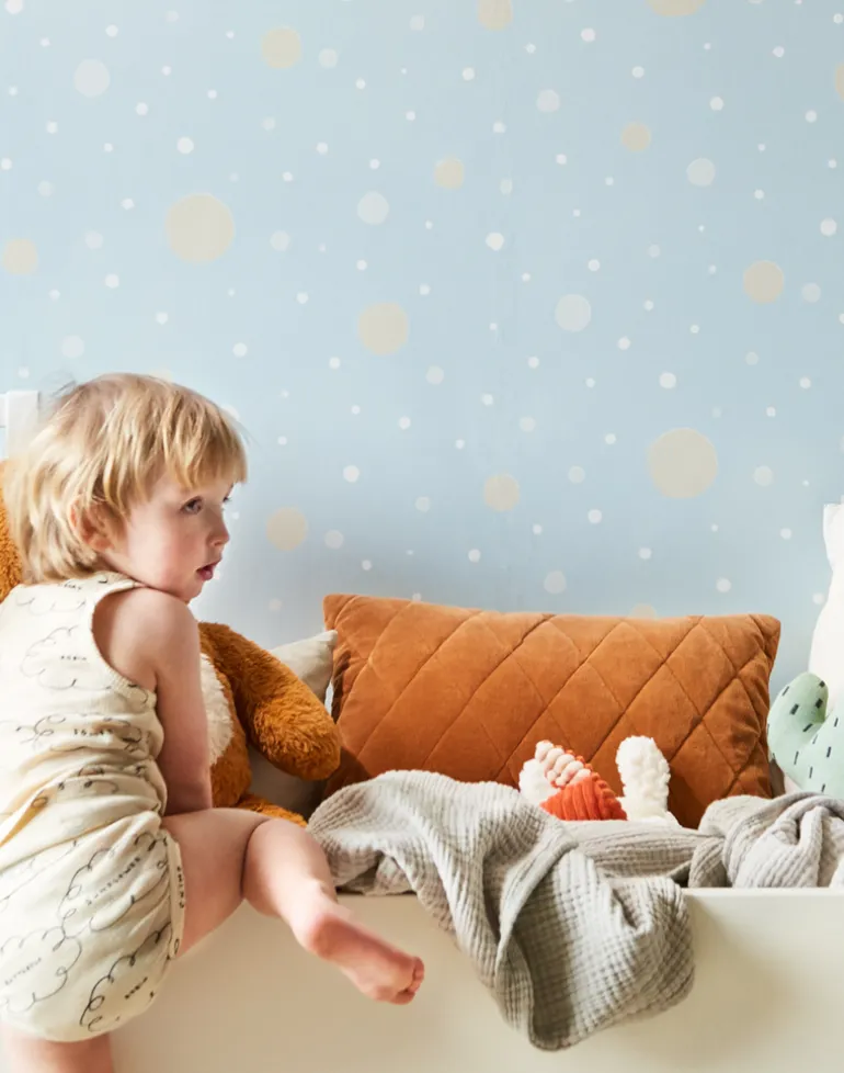 The wallpaper is made in Sweden and printed on non-woven material with colors that are water-based and completely free from solvents and PVC. Excess color is managed in an environmentally sound manner and paper waste is converted into heat. The wallpaper has a very beautiful surface where you can feel the color structure with the bare hand.