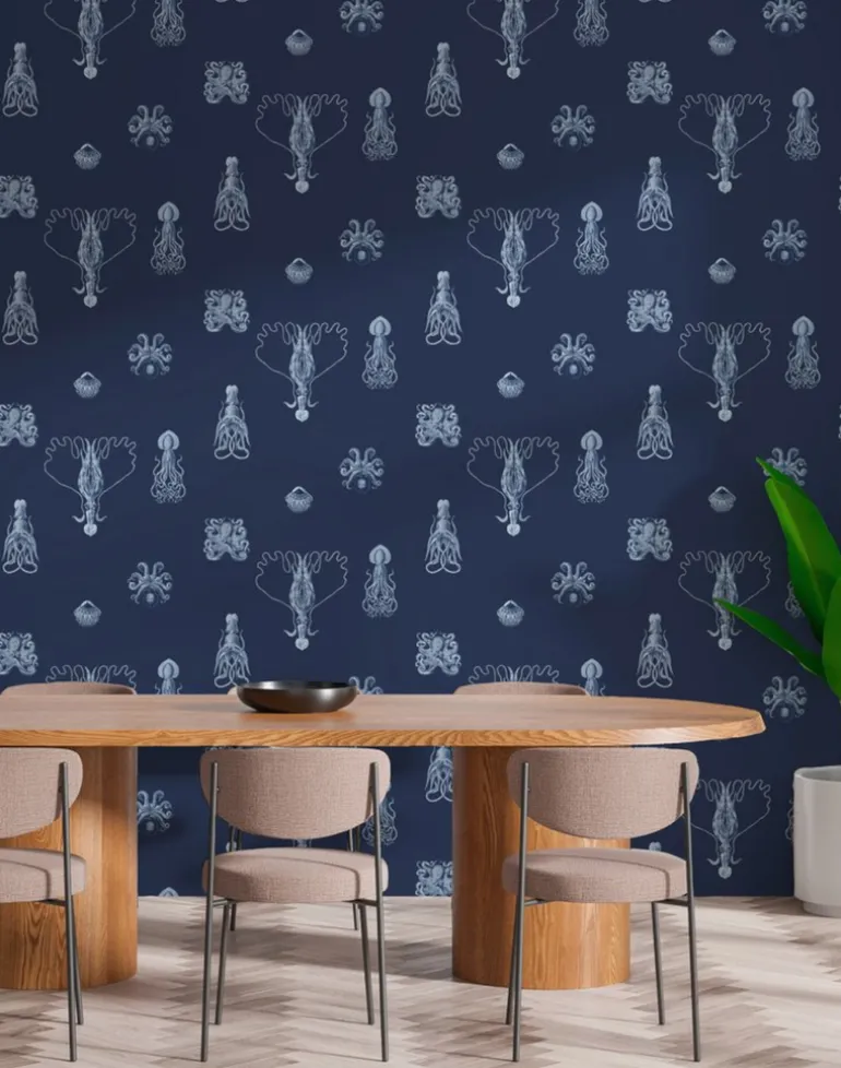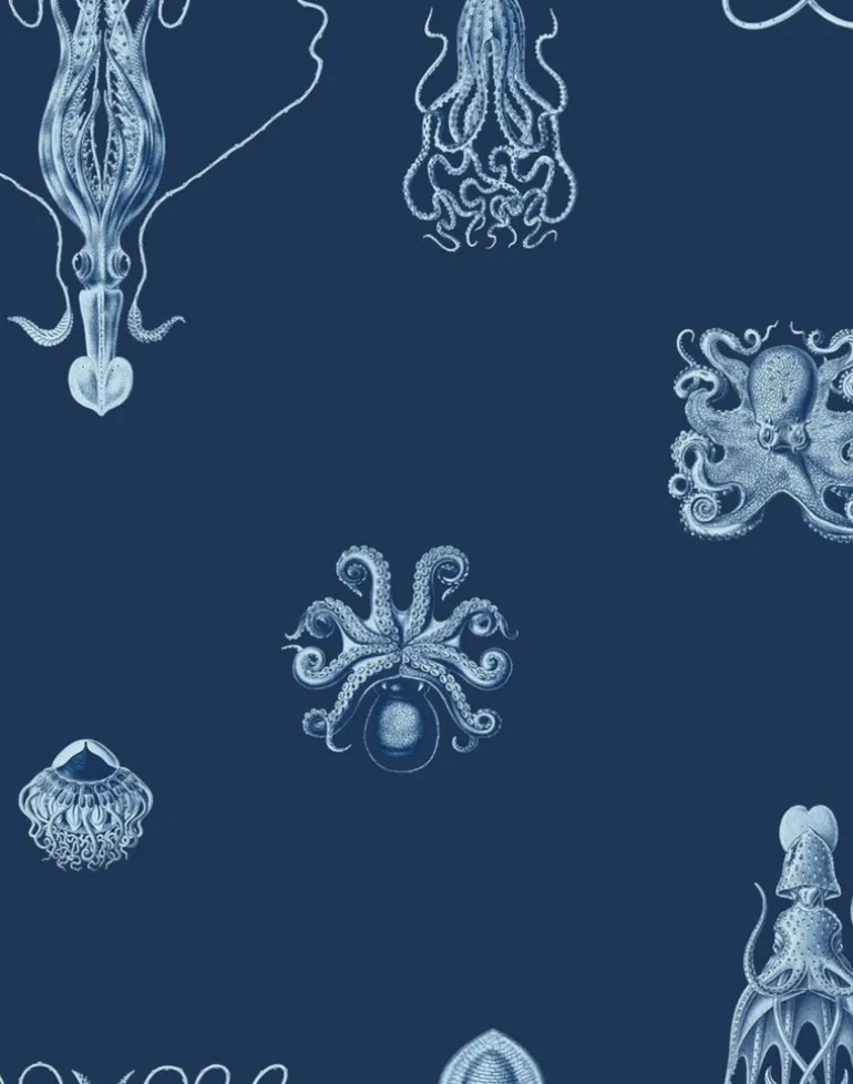 With graphic precision and delicate shading, each octopus in this design looks as if it swam straight from out of a science fiction novel. Inspired by the intricate works of Ernst Haeckel, Consortium brings forth a symphony of detailing and symmetry, making it a versatile addition to any space.