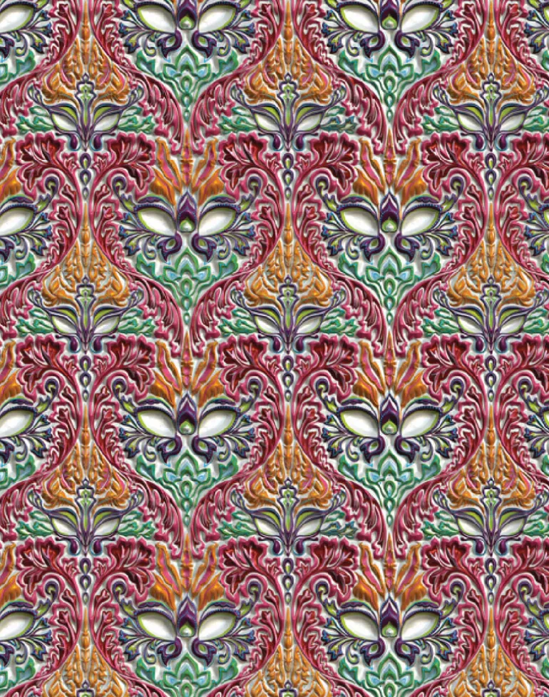 Da Mask takes its inspiration from sources ranging from Indian woodwork to Victorian fairgrounds, through French palaces to Staffordshire potteries. The colors lift off the wall with a sense of the theatrical. Embellished with intricate details the Da Mask range looks engraved and hand painted and metamorphosizes into each incarnation by the use of color and subtle shading.