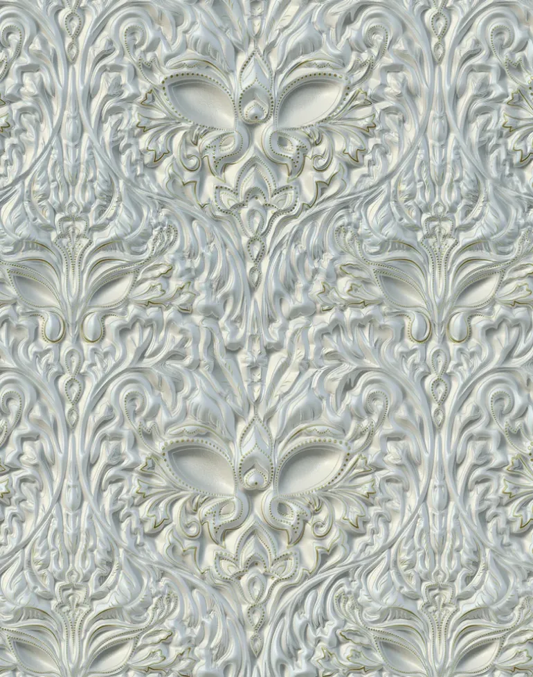 Da Mask takes its inspiration from sources ranging from Indian woodwork to Victorian fairgrounds, through French palaces to Staffordshire potteries. The colors lift off the wall with a sense of the theatrical. Embellished with intricate details the Da Mask range looks engraved and hand painted and metamorphosizes into each incarnation by the use of color and subtle shading.
